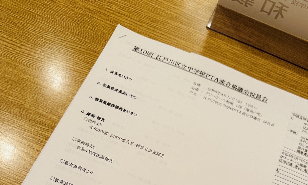 - 実施名:江戸川区立中学校PTA連合協議会 役員会(新旧顔合わせ会)