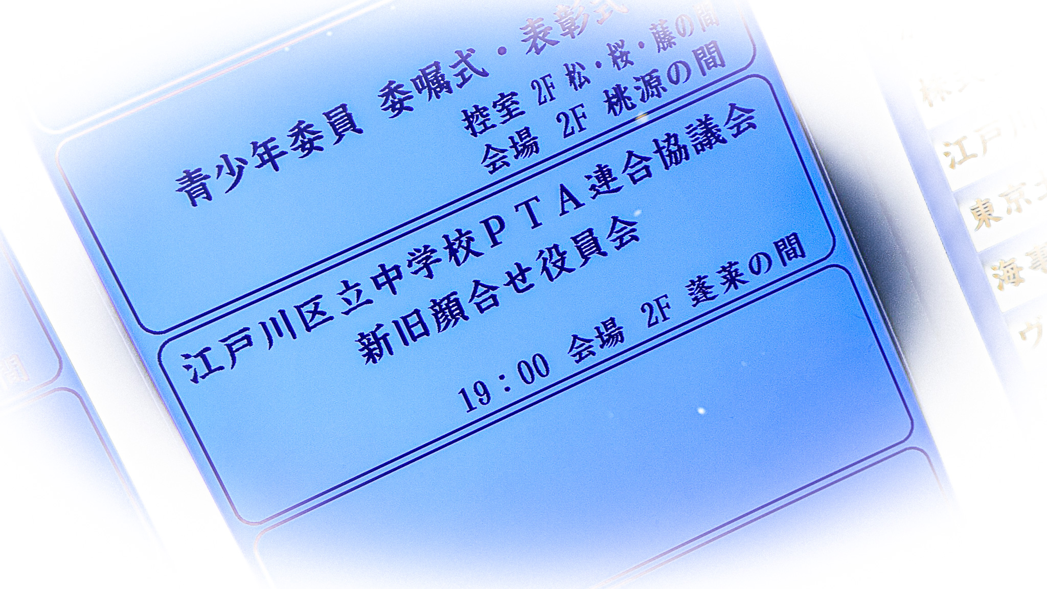 - 実施名:江戸川区立中学校PTA連合協議会 新旧懇親会
