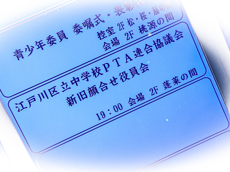 令和6年度 江中P連評議員会および歓送迎会に出席してきました。 この会は、各校の新旧の校長先生およびPTA会長、学校関係者が参加しました。 今回、瑞江二中の会長は、第3ブロックの受付業務を受け持ちました。 評議員会では、…